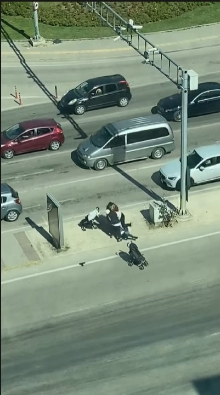 Tekme tokat kavga sırasında bebek arabalarından biri orta refüjden yola inip ilerlemeye başladı. Üzeri açılan bebek arabasında bebeğin olmadığı dilencilerin istismar yoluyla vatandaşları nasıl kandırdıkları bir kez daha gözler önüne serildi.