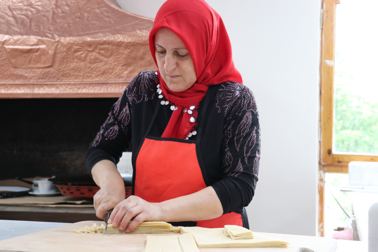 Kendisinin yemek bölümünde görev yaptığını dile getiren Çakır, "Üç grup yemekçimiz var. Nebidede çorbasından tutun bütün yemekleri yapıyoruz burada. Misafirlerimizi ağırlıyoruz. Kadın kooperatifi olarak herkesi bekliyoruz." ifadesini kullandı.