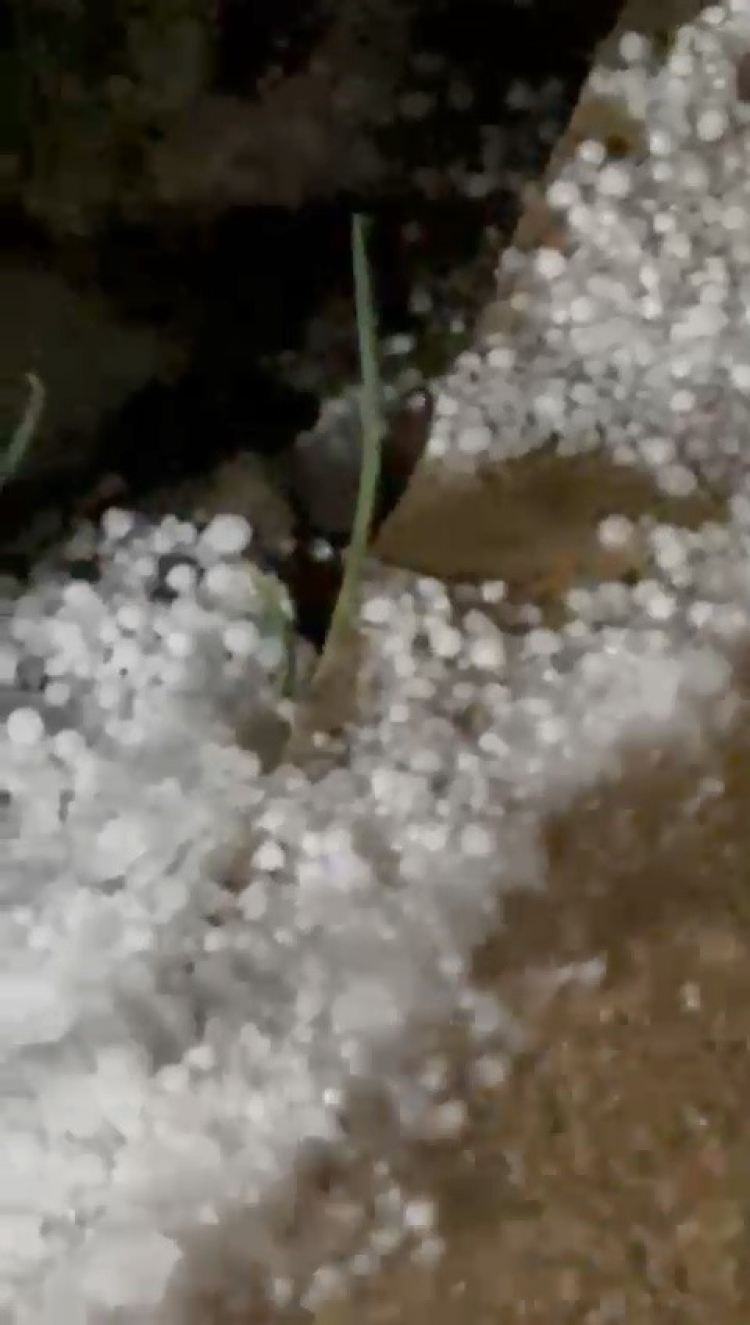 Bursa'nın Büyükorhan ilçesinde etkili olan dolu yağışı nedeniyle bahçelerdeki fideler zarar gördü.