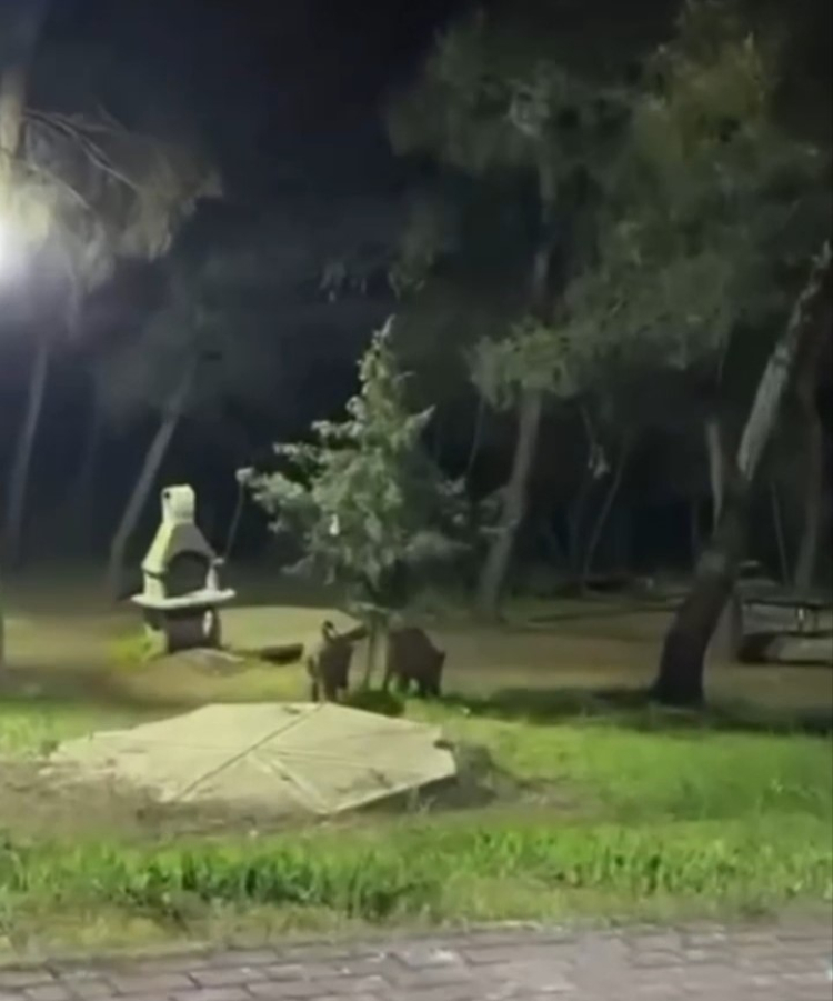 Domuzlar bir süre çevrede dolaştıktan sonra piknik alanındaki çeşmeye yöneldi.