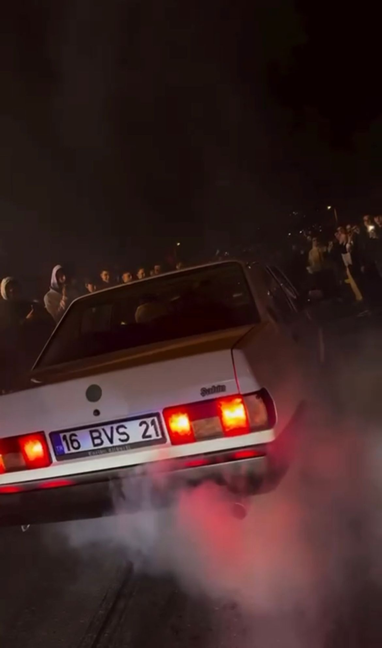 Nilüfer ilçesi Üçevler Mahallesi'ndeki Küçük Sanayi Sitesi’nde toplanan sürücüler, otomobilleriyle drift atıp, trafiği tehlikeye soktu.
