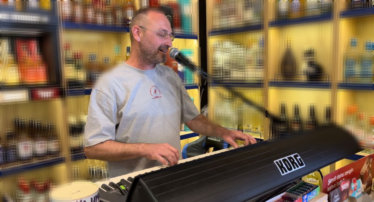 Marketten içeri adım attıklarında org çalıp, şarkı söyleyen Ersin Akdeniz'i görenler, önce şaşırıyor ardından ortama uyum sağlayarak ona eşlik ediyor.