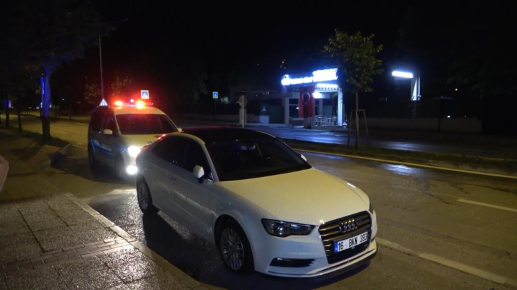 Bursa'da trafik polisleri gece boyu yaptığı uygulamada alkollü sürücülere geçit vermedi. Denetim noktasına takılan bir sürücü polisin defalarca yaptığı ‘dur' ikazına uymayıp uygulama noktasından geri vitese takıp kaçmaya çalıştı. Polis bu kez de ters yönden kaçmaya çalışan şüpheliyi durdurmak için havaya uyarı ateşi açtı. Uyarılara aldırış etmeyen ve lastiği patlayan sürücü kaçmaya devam etti. O anlar kameraya anbean yansıdı.
