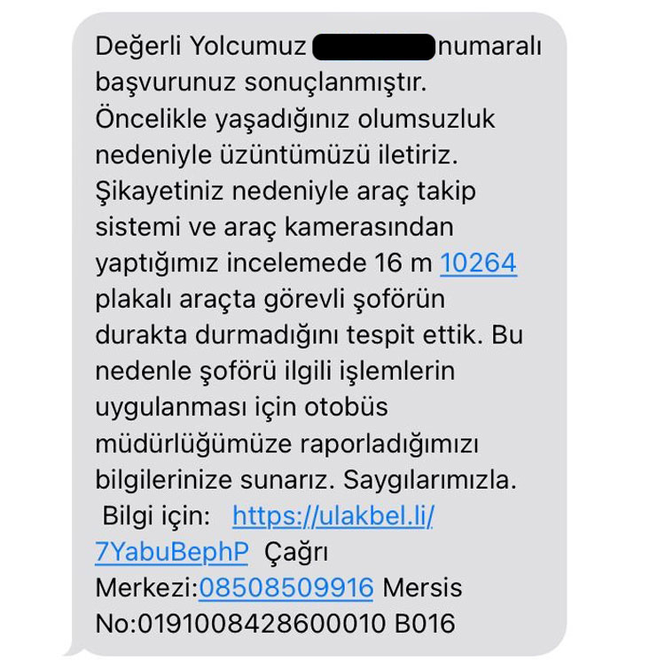 Öncelikle yaşadığınız olumsuzluk nedeniyle üzüntümüzü iletiriz. Şikayetiniz nedeniyle araç takip sistemi ve araç kamerasından yaptığımız incelemede 16 m 10264 plakalı araçta görevli şoförün durakta durmadığını tespit ettik. Bu nedenle şoförü ilgili işlemlerin uygulanması için otobüs müdürlüğümüze raporladığımızı bilgilerinize sunarız. Saygılarımızla.
