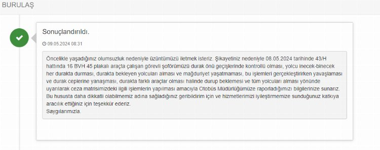 Öte yandan yapılan şikayet sonrası BURULAŞ'tan konuyla ilgili açıklama geldi. Yapılan açıklamada şu ifadelere yer verildi: