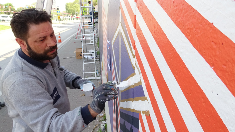 Bursa'da duvarları tuval yapıp şehrin değerlerini resmediyorlar