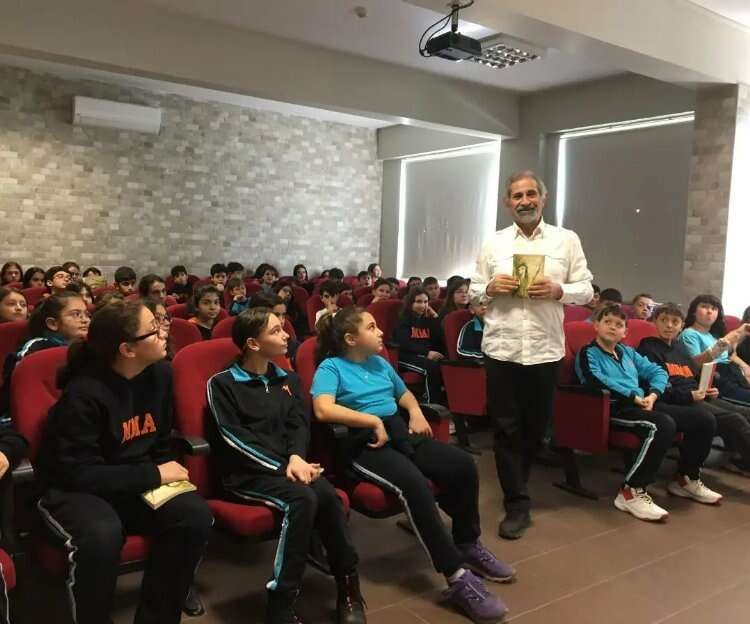 Çocuklarımız, gençlerimiz sanatla uğraşsınlar, güzel şeyler yapsınlar" dedi. Söyleşinin ardından Meral Muammer Ağır Ortaokulu öğrencileri, yazarın okudukları kitaplarıyla ilgili merak ettikleri soruları sordular.