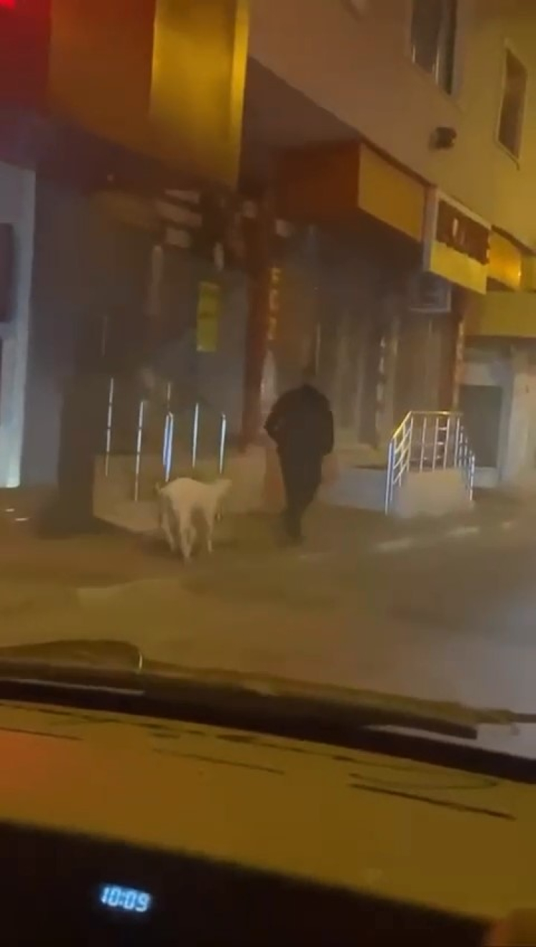 Bursa'da bir vatandaş, eğittiği kuzusunu sokakta dolaştırdı. İlginç anları gören vatandaşlar kayıt yaptı.