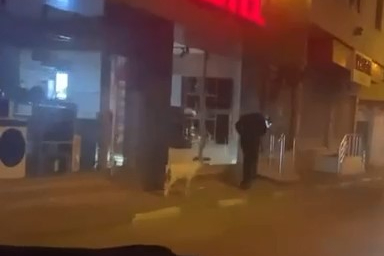 Sokakta dolaşan kuzuyu gören vatandaşlar, ilginç anları kayda aldı.
