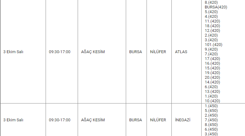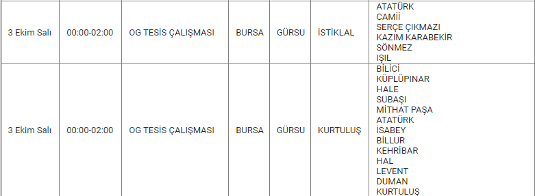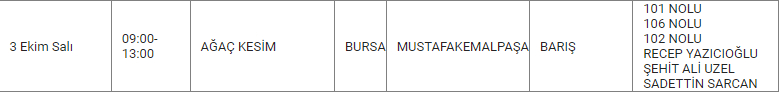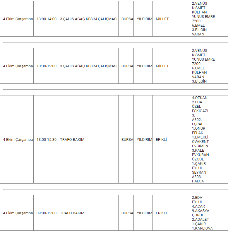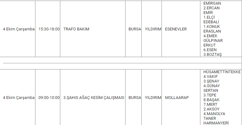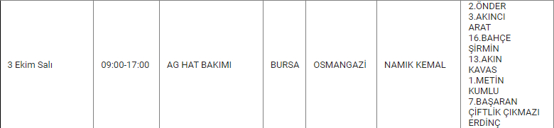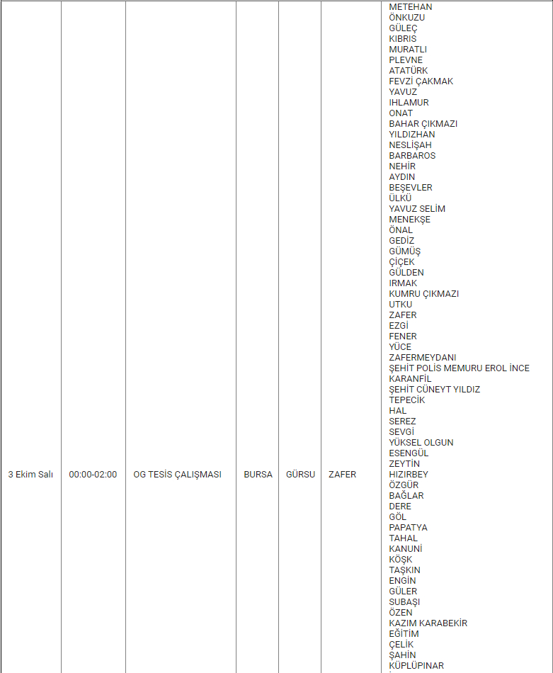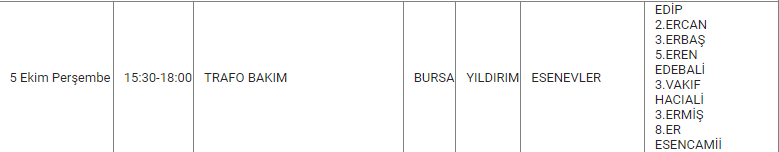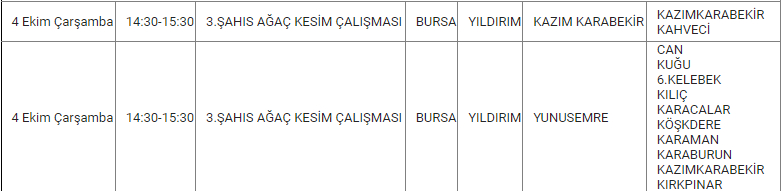 BURSA'DA ELEKTRİK KESİNTİSİ NE ZAMAN?