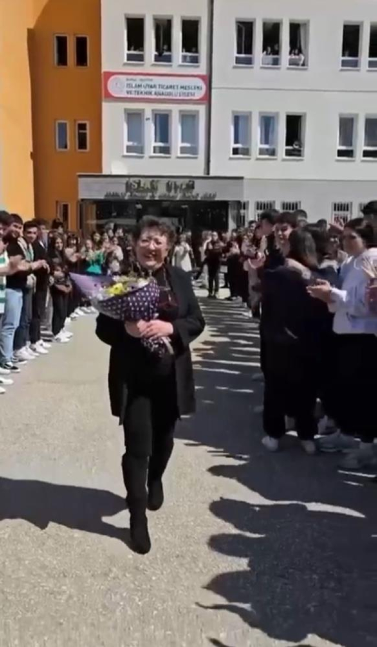 Okul bahçesine kadar alkışlarla uğurlanan matematik öğretmeni Akkör'ün duygusal anları, saniye saniye amatör kamera ile kaydedildi.