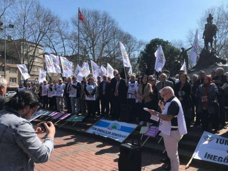Tüm Emeklilerin Sendikası Bursa Şubesi "Emeklilerin kaderi ucuz gıda kuyruğu mu?" konulu basın açıklamasını Atatürk Anıtı önünde gerçekleştirdi.