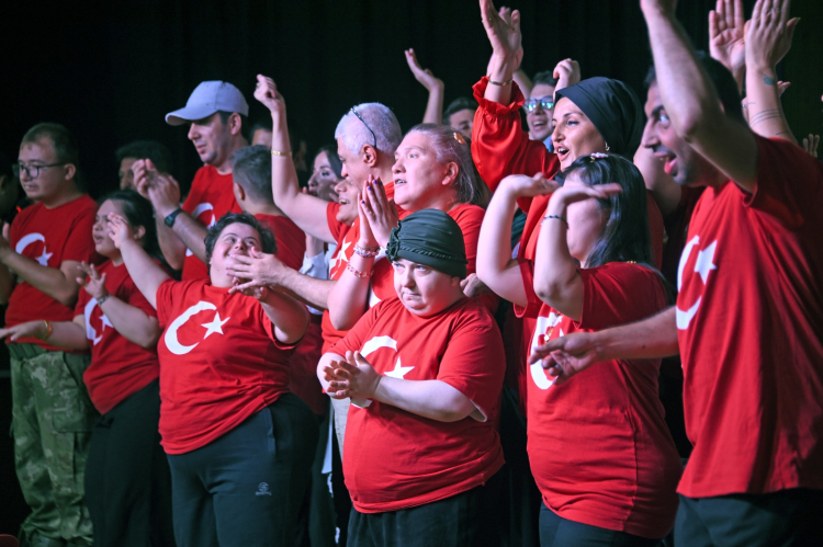 OBAM üyesi engelli bireyler sahneledikleri tiyatro gösterisiyle halkın bağımsızlık inancını ve askerlerine olan desteğini canlandırdı.