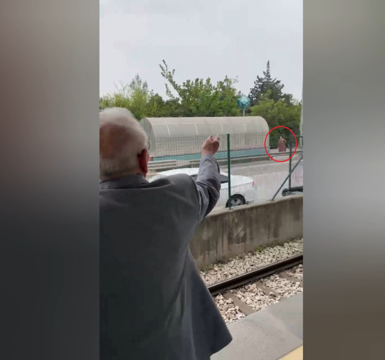 Cadde üstünde bir sağa bir sola yürüyen Hasan Akgül'ün o sırada torunu ile kurduğu diyalog da görüntülere yansıdı.