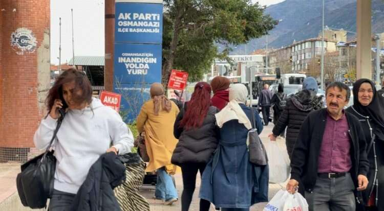 Bursa’da Meteoroloji Genel Müdürlüğü’nün uyarısını verdiği rüzgar kent merkezinde hayatı olumsuz etkiledi. Vatandaşların yürümekte zorluk çektiği anlar kameralara yansıdı.
