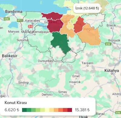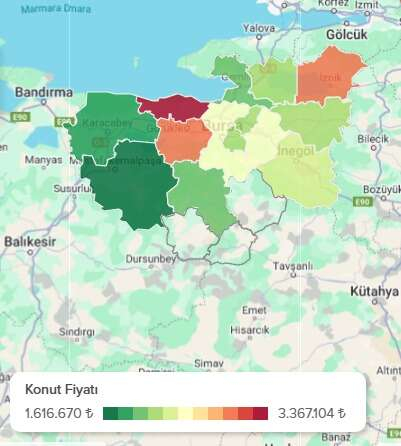 Bursa'nın diğer ilçelerindeki ortalama konut fiyatları şöyle;