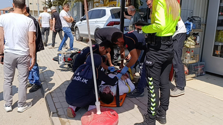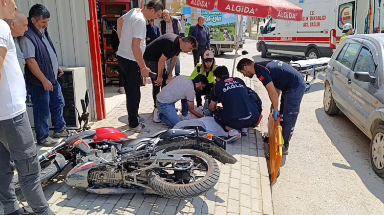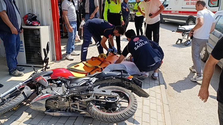 Çarpışmanın etkisiyle devrilen motosikletten düşen sürücü yaralandı. Yardıma koşan vatandaşlar, yaralıyı güneşten korumak için bakkalın şemsiyesini kullandılar. Yaralı kaza yerine sevk edilen Ambulansla İnegöl Devlet Hastanesine kaldırıldı.