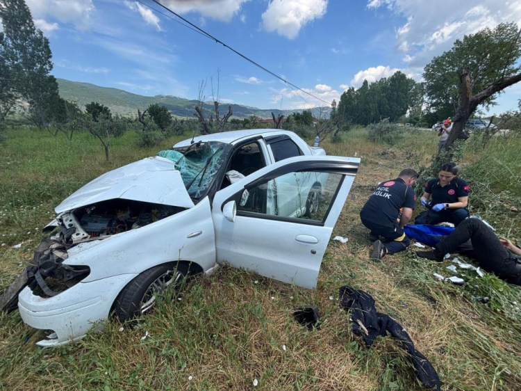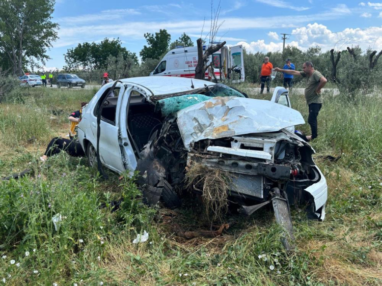 Takla atıp zeytin ağacına çarparak duran otomobilde bulunan sürücü ile birlikte araçta bulunan N.Y.(25) ile M.N.K. (24) yaralandı.