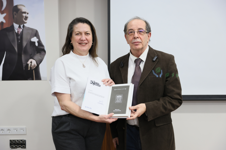 Etkinliğin sonunda Kültür, Sanat ve Sosyal İşler Dairesi Başkanı Şafak Baba Pala tarafından Prof. Dr. Nami Başer’e hediye verildi.