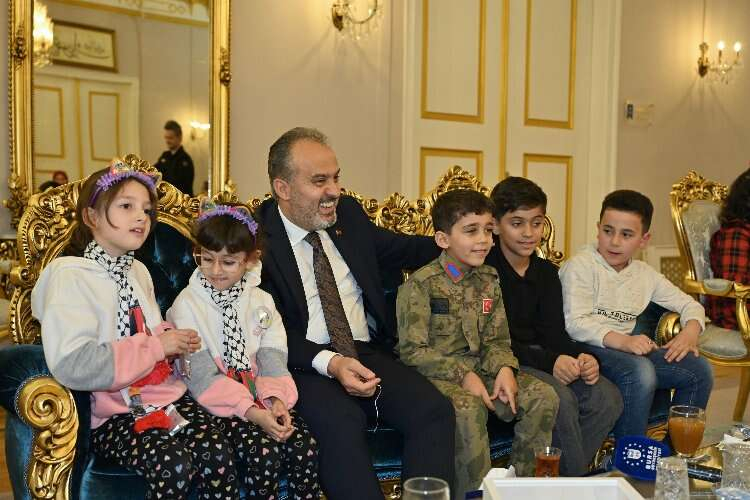 Bursa'da Filistinli çocuklardan Başkan Aktaş’a ziyaret