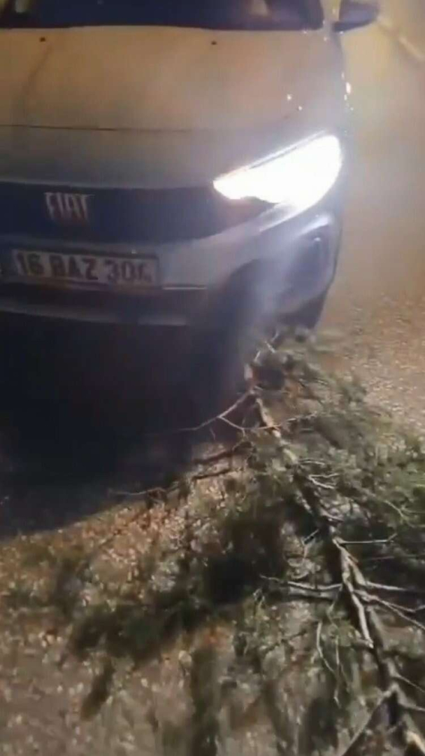 Bursa'nın merkez Osmangazi, Yıldırım ve Nilüfer ilçelerinde fırtınada devrilen ağaçların, tabelaların ve sert cisimlerin uçuştuğu ve düştüğü anlar vatandaş ve güvenlik kameralarına yansıdı.