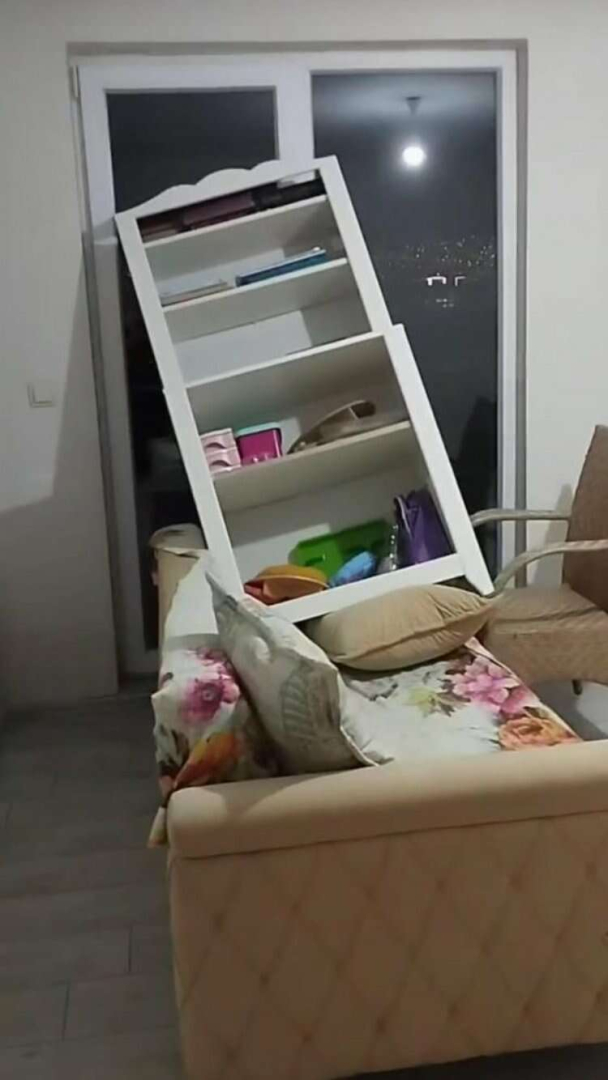 Havada uçuşan eşya ve parçaları korku ve şaşkınlıkla evlerinden izleyen vatandaşlar camların önüne dolap koyarak kendilerini korumaya çalıştı.