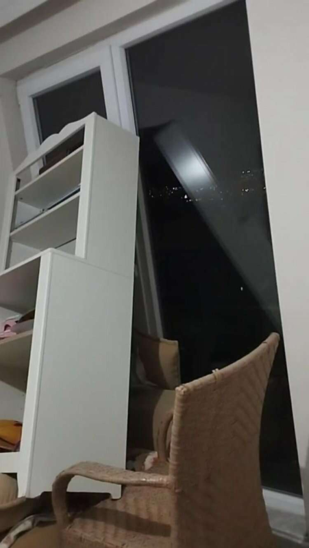 Bir evin cam balkonuna vuran rüzgar korku filmlerini aratmadı. Bir koltuğun düşme anı da güvenlik kamerasına yansıdı.