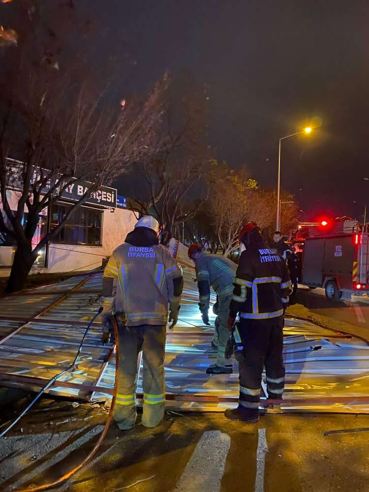 Bursa’da hızı saatte 95 kilometreye ulaşan fırtına sebebiyle çatılar uçtu, ağaçlar devrildi. Fırtına nedeniyle teyakkuzda olan Bursa Büyükşehir Belediyesi ekipleri, geceden sabaha fırtına kaynaklı 607 olaya müdahale etti.