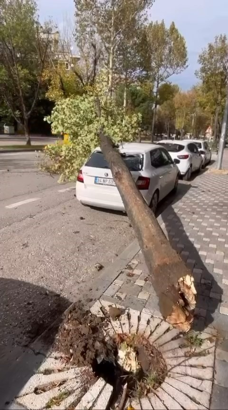 Merkez Osmangazi ilçesi Kükürtlü Caddesi üzerinde bir ağaç da fırtınanın etkisiyle araçların üzerine devrildi.