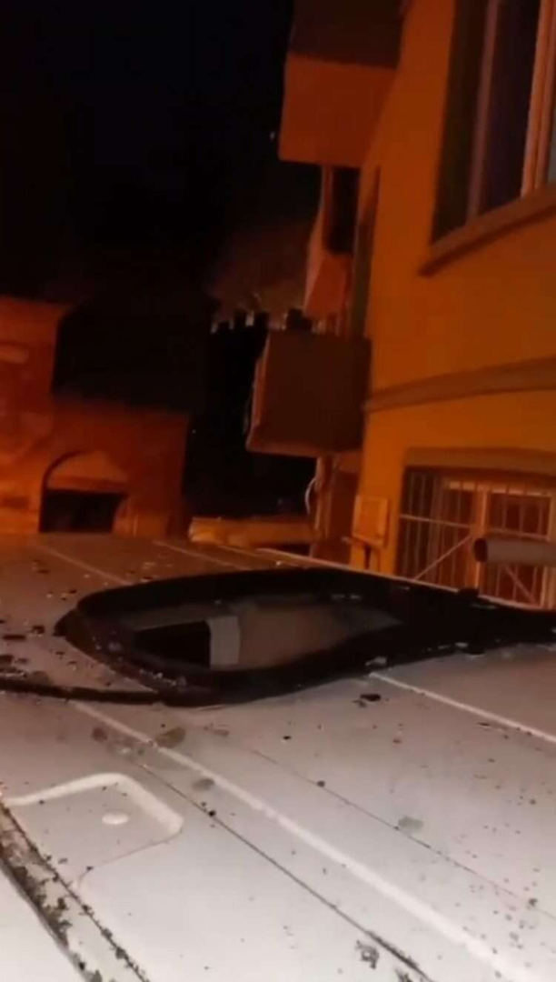 Bursa'da fırtınada servis minibüsünün içine evin bacası düştü