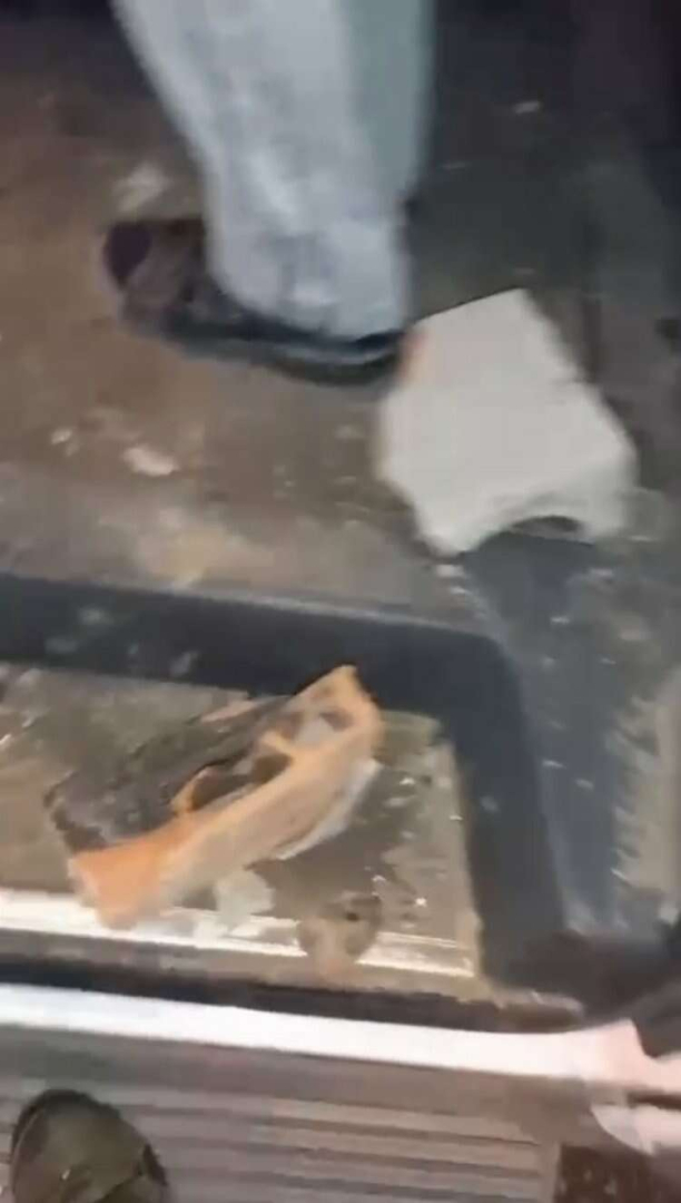 Servisin havalandırma camını kırarak içeri giren baca parçası, maddi hasar meydana getirdi. Kaza, şans eseri kimse yara almadan atlatıldı.