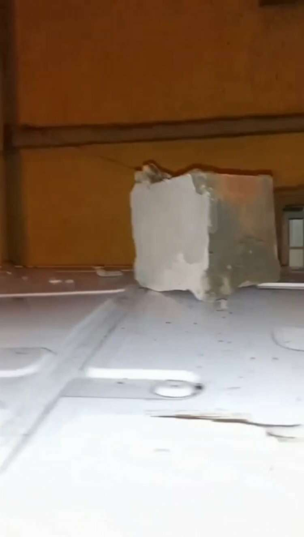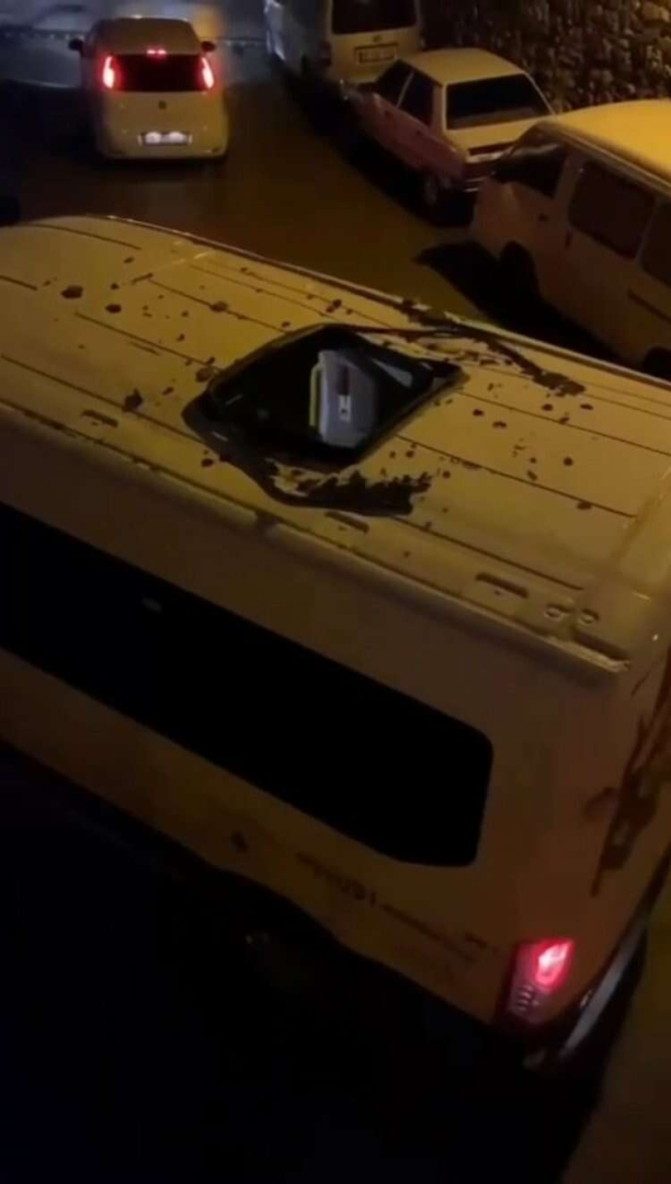 Merkez Osmangazi ilçesi Mollagürani Mahallesi’nde park halindeki bir servis minibüsünün üzerine evden kopan baca parçası düştü.