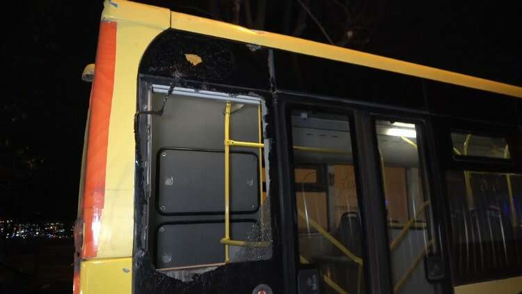 Otobüsün arka camı patlarken, yaralanan 2 yolcu ambulanslarla Çekirge Devlet Hastanesi'ne kaldırıldı.