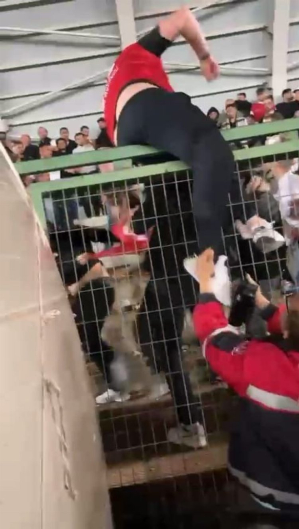 Maç sırasında bir taraftar pozisyona sinirlenerek sahaya şişe attı. Şişe atma olayı sonrası iki takım taraftarları arasında tartışma çıktı. Tartışma bir anda büyüyerek kavgaya dönüştü. Yaklaşık 200 taraftar birbirini darp etmeye başladı. Kavga da şişeler, yumruklar havada uçuşurken, 3 kişi de bıçakla yaralandı. Olay yerine çok sayıda polis ve 112 ekibi sevk edildi. Ekipler kavgayı zorlukla ayırdı.