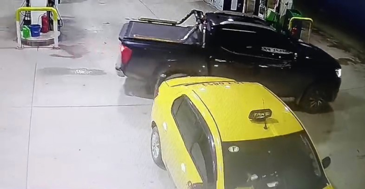 Gece saat 02.00 sıralarında yaşanan ve yarım saatlik kovalamacayla sona eren taksi gasbının, benzin istasyonundaki başlangıç anları güvenlik kamerasına yansıdı.