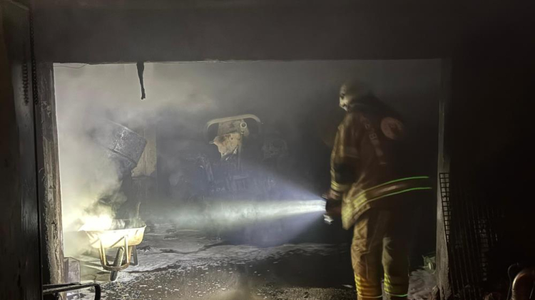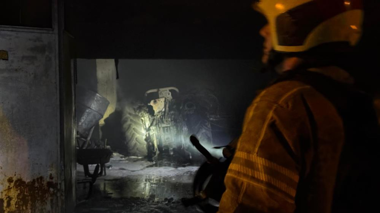 Alevlerin yükseldiği ardiye kısmında bulunan çok sayıda tarım makinesi zarar görürken, bir traktör de tamamen küle döndü.