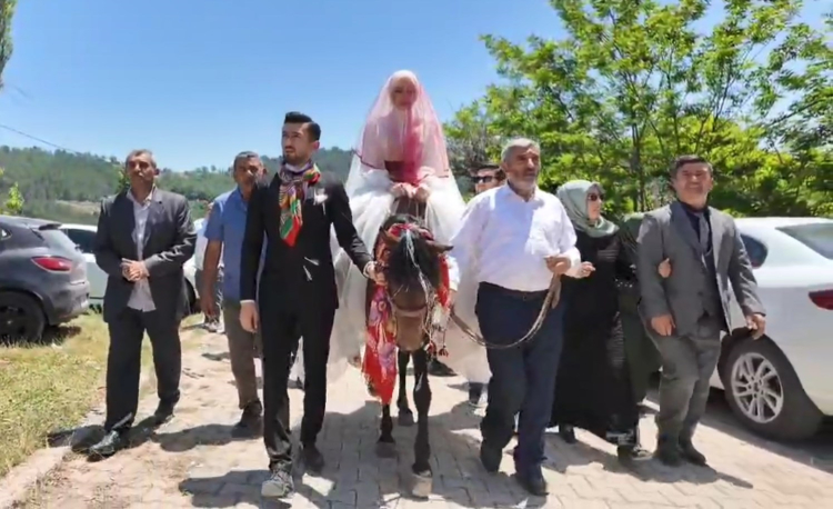 GELİN AT ÜSTÜNDE DÜĞÜN ALAYINA KATILDI