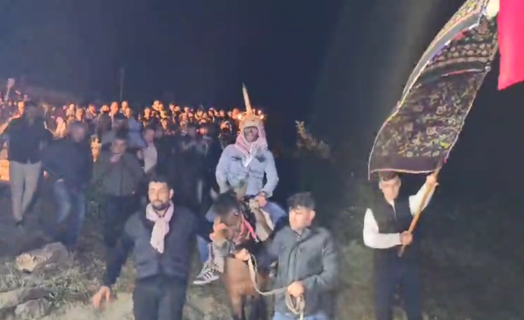 Damat, meşaleler yakılıp, Türk bayrağının altına takılan yazmalar eşliğinde mahalleye getirildi. Gençler, fesin üzerine mum dikerek yaktı ve damadı at sırtında mahallede gezdirdi. Mahalle sakinleri, at üzerindeki damadın etrafında toplanarak, türküler söyleyip, oyunlar oynadı. Atla yapılan turun ardından tavuk ve tatlı alma gelenekleri gerçekleştirildi. Damat tarafı gelin evinden tavuk, gelin tarafı ise damat evinden tatlı aldı. İki taraf, bu yiyecekleri mahallede belirlenen yüksek bir noktaya çıkararak, geleneksel töreni tamamladı.