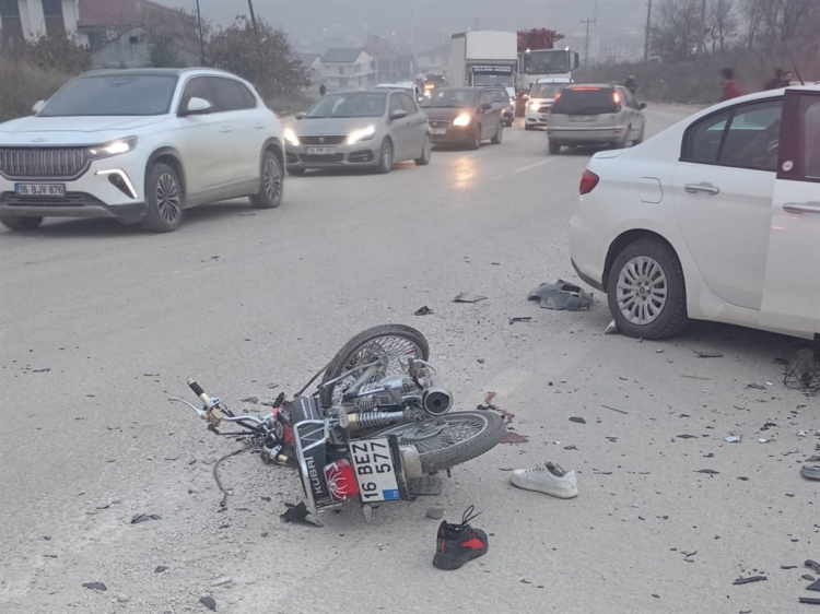 Yokuş aşağı inen Muhammed Şiğva yönetimindeki 16 BEZ 577 plakalı motosiklet ile karşı yönden gelen ve ara sokağa dönmek isteyen Uğur D. (38) yönetimindeki 16 BUY 603 plakalı otomobil çarpıştı.