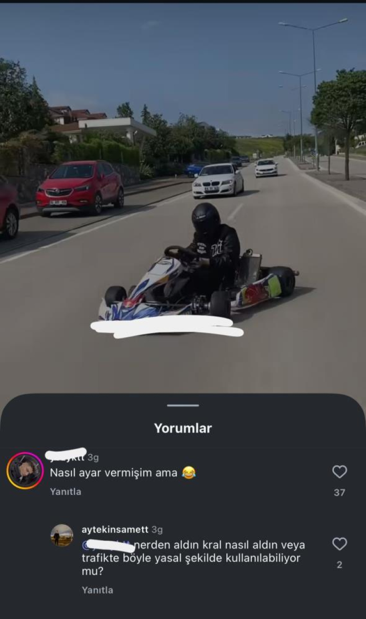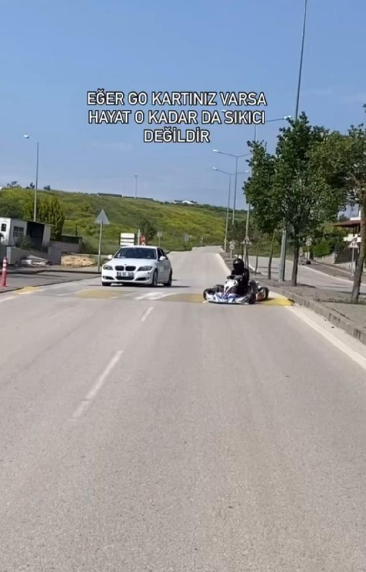 Sürücü ise kendi kişisel hesabından yaptığı paylaşımda 'eğer go kartınız varsa, hayat o kadar da sıkıcı değildir' ifadelerini kullandı.