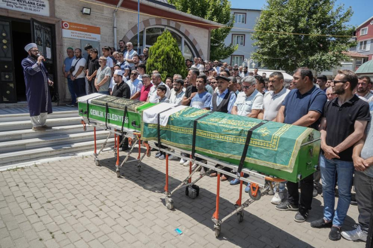 Berat Anıl Yılmaz ve Yener Çakır'ın cenazeleri, bugün öğle namazına müteakip Gemlik'teki Mevlana Camii'nde kılınan cenaze namazının ardından Gemlik Yeni Mezarlığında toprağa verildi. Cenazeye aileleri, yakınları, mahalle sakinleri ve çok sayıda vatandaş katıldı.