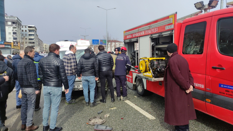 Alınan bilgiye göre Ersan Bozdağ (49) idaresindeki 16 VM 104 plakalı kapalı kasa bir minibüs ana yolda yol ortasına başka bir araçtan düşen meyve selesine çarpmamak için ani manevra yapınca önünde seyir halinde olan Avni İnci (72) yönetimindeki 16 CHD 58 plakalı hafif ticari araca arkadan çarptı.