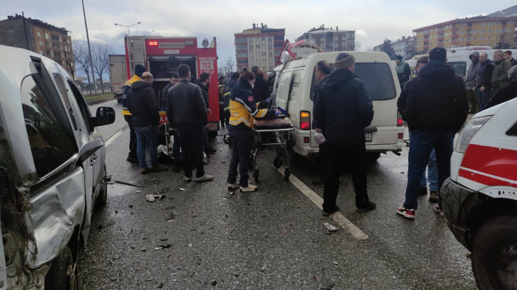 Çarpmanın şiddeti ile minibüs sürücüsü Ersan Bozdağ yaralandı. Araç içinde sıkışan yaralı sürücü için olay yerine itfaiye ve sağlık ekipleri sevkedildi.
