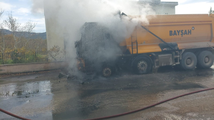 Edinilen bilgiye göre, Taş Mektep yakınlarında hafriyat kamyonundan dumanlar çıktığı fark eden sürücü, araçtan inip canını kurtardı. Biranda alev topuna dönen kamyon, Orman İşletme Müdürlüğü’ne bağlı ekipler tarafından söndürüldü.
