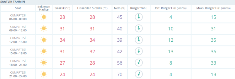 PAZARTESİ: Az bulutlu, sıcaklık 31 derece