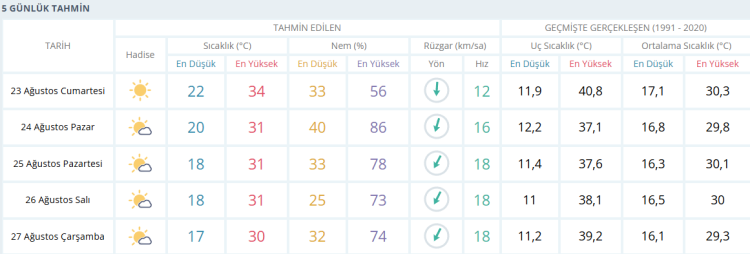 İŞTE BURSA İÇİN 5 GÜNLÜK HAVA DURUMU TAHMİNİ (23 AĞUSTOS 2025)