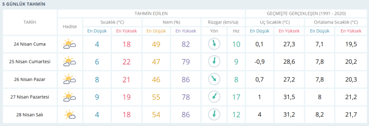 İŞTE BURSA İÇİN 5 GÜNLÜK HAVA DURUMU TAHMİNİ (24 NİSAN 2026)