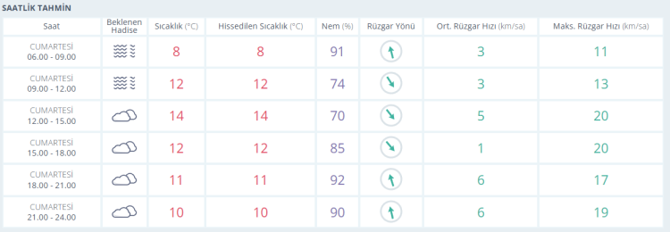 ÇARŞAMBA: Yağmurlu, sıcaklık 14 derece
