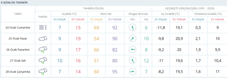 İŞTE BURSA İÇİN 5 GÜNLÜK HAVA DURUMU TAHMİNİ (24 OCAK 2025)
