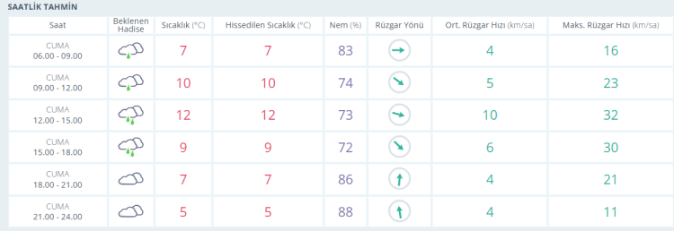 Kentte gündüz sıcaklıkları 12 dereceye kadar çıkarken, akşam ve gece saatlerinde yaklaşık 6 derece civarında seyredecek.
